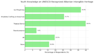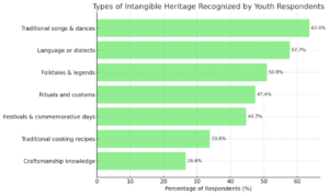 According to the results, 95% of them reflect commitment and interest in preserving and promoting this heritage. Some young people do not clearly distinguish between the definitions of intangible and tangible heritage, highlighting the need for broader education. Some respondents incorrectly identified archaeological sites as intangible heritage, indicating some confusion between the tangible and intangible domains.