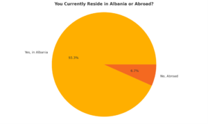 The data shows that the vast majority of young people surveyed currently reside in Albania (92.3%), while 7.7% live abroad.
